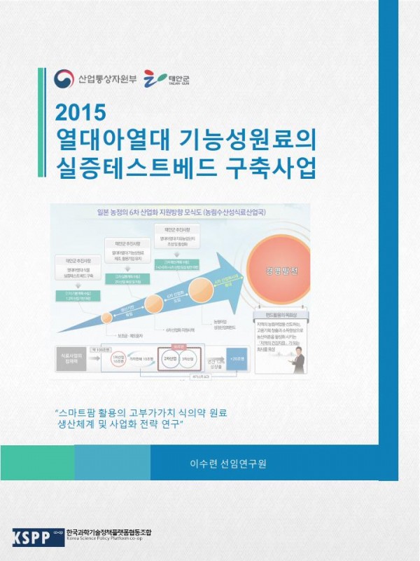 2015 열대아열대 기능성원료의 실증테스트베드 구축사업 관련링크 페이지 정보 작성일20-02-19 18:51 조회5,170회 본문 스마트팜 활용의 고부가가치 식의약 원료 생산체계 및 사업화 전략 연구 이전글 목록