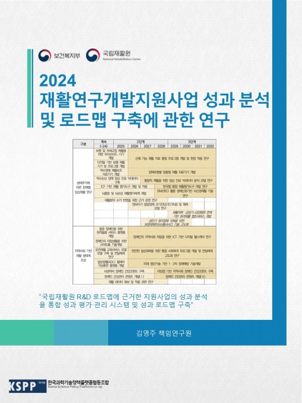 재활연구개발지원사업 성과분석 및 로드맵 구축에 관한 연구 관련링크 페이지 정보 작성일26-03-04 16:19 조회500회 본문 국립재활원 R&D 성과체계 및 성과로드맵 구축 이전글 다음글 목록