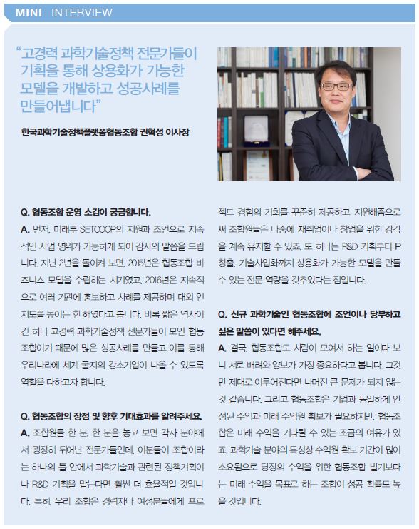 과학기술인협동조합 사례집 관련링크 http://www.setcoop.net/ [관련링크] 페이지 정보 작성일17-01-10 13:02 조회7,142회 본문 미래창조과학부 과학기술인협동조합지원센터(www.setcoop.net)의 협동조합 운영사례 및 보도자료 이전글 다음글 목록