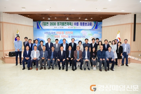 박보생 김천시장은 인사말을 통해 “이번 김천 2030 장기발전계획은 내륙의 성장거점도시로서 성장하는 김천시의 위상을 새롭게 하고, 김천의 미래비전과 전략, 부문별 발전계획이 담겨져 있다. 국토연구원 연구원 집필진의 전문지식과 지역 학계 전문가, 관계공무원, 시민들의 아이디어가 종합돼 김천시의 미래 2030년 밑그림을 그린 것이다. 이 계획이 향후 10년 행복도시 김천의 길을 안내하는 종합 지침계획서가 되도록 하겠다”라고 밝혔다. [경상매일신문=윤성원기자]